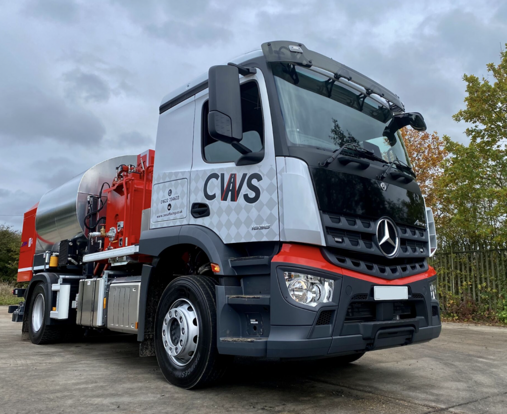 Our new UB Combi Sprayer is here! It can spray 4.8 Metres wide in a single pass and apply hot bitumen to all interfaces autonomously, removing hazard of manual application; and at CW Surfacing safety will always remain our No.1 priority. The Mercedes Actros lorry is the best on the market with its advanced pedestrian brake assist systems.